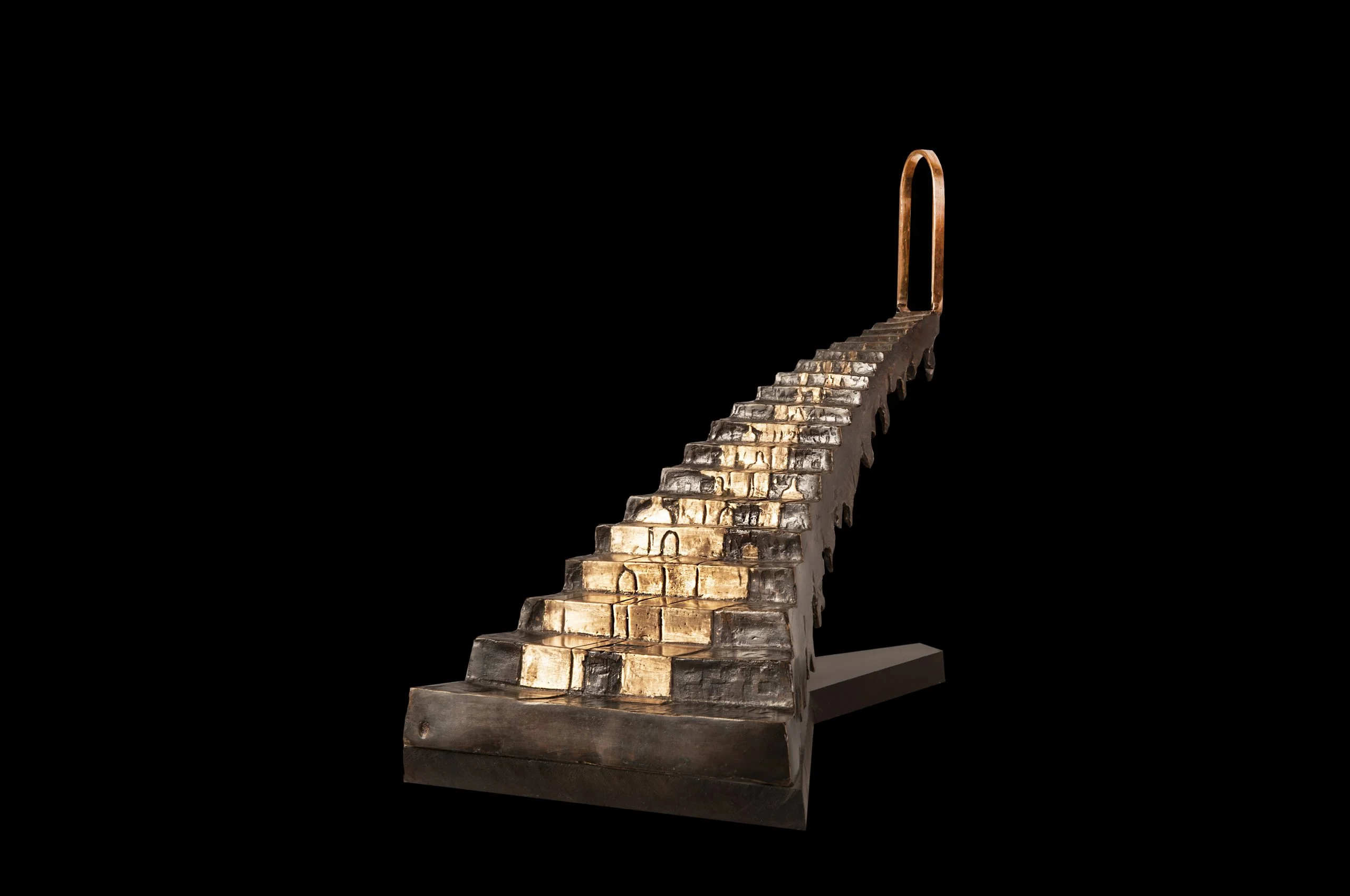 The interdisciplinary nature of her work places Menczel at a unique intersection of artistic and scientific inquiry. She draws comparisons to artists like Jean Arp for the organic abstraction in her forms and Isamu Noguchi for the balance between form and function in her works. However, her emphasis on inscriptions as a form of intellectual storytelling sets her apart. In “The Celestial Mechanics of Providence,” gears and mechanics reference not just the universe’s motion but humanity’s attempt to understand the divine, mirroring the quest of both scientists and philosophers. Her work bridges the gap between the material and immaterial, evoking the spiritual in a way reminiscent of Constantin Brâncuși’s modernist pursuit of the essence of form.